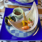 さらにデザートもクオリティが高かったです。手前のアイスボックスクッキーは、こちらも黒と赤で丹後くろまつ号をイメージ。黒い部分には炭が使用されているとのことです。